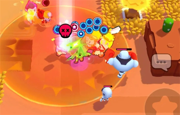 2、資源管理要點(diǎn):技能能量攢滿后,優(yōu)先在團(tuán)戰(zhàn)/搶寶石時(shí)釋放,最大化增益;血量低時(shí),利用地形(草叢、掩體)迂回,依賴高生命回復(fù)/隊(duì)友治療,保障持續(xù)抗傷。