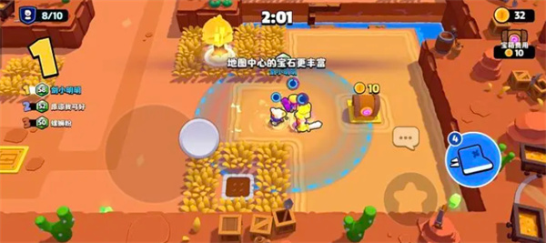 3、場(chǎng)景適配邏輯:寶石爭(zhēng)霸模式,占位中心護(hù)寶石,開技能讓近戰(zhàn)隊(duì)友速清敵方;荒野決斗模式(單/雙),利用高生命茍活,技能補(bǔ)自身/隊(duì)友(雙排)輸出,適配多團(tuán)隊(duì)協(xié)作場(chǎng)景。