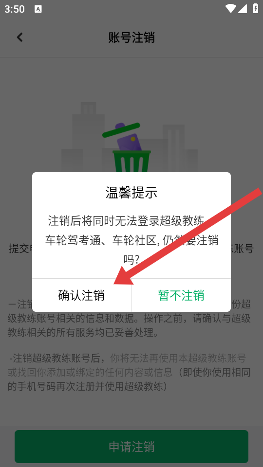 4、在彈出的溫馨提示彈窗中,點(diǎn)擊確認(rèn)注銷(xiāo)按鈕,完成賬號(hào)注銷(xiāo)操作。