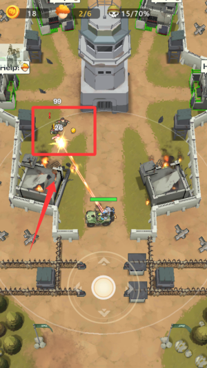 1、熟悉基礎(chǔ)操作,滑動(dòng)方向鍵控制戰(zhàn)車(chē)移動(dòng),優(yōu)先營(yíng)救人質(zhì)可獲得額外火力升級(jí)。
