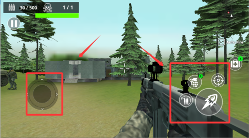 1、熟悉基礎(chǔ)操作,左手控制移動(dòng)右手瞄準(zhǔn)射擊和投擲手雷。