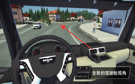 3、切換駕駛艙視角,操控MAN卡車,在城鎮(zhèn)道路行駛,遵守交規(guī),完成運輸、工程任務,積累資金,解鎖新機械、關卡。
