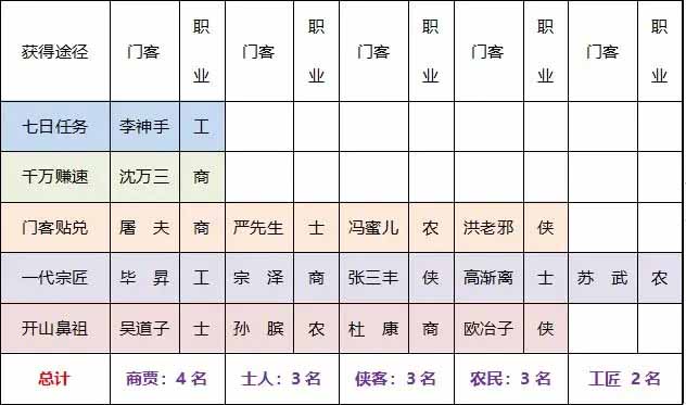 3、多途徑收集:門客貼兌可兌換A級屠夫、嚴先生等,每日限購5次;一代宗匠需消耗100點工匠值招募畢昇、宗澤;開山鼻祖通過商會捐獻獲取吳道子、孫臏。