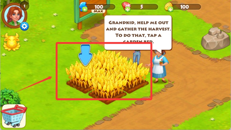 2、開始游戲后點(diǎn)擊下方的麥子就可以開始收割。