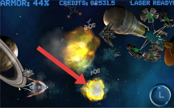 1、進(jìn)入游玩需要瞄準(zhǔn)太空敵人射擊,借助火力制造爆炸摧毀目標(biāo),通過爆炸反饋確認(rèn)攻擊成效。