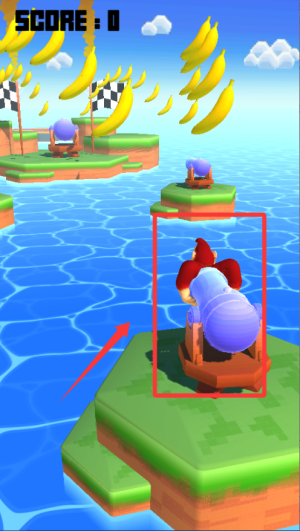 3、嘗試將大猩猩當(dāng)作炮彈發(fā)射,掌握飛行軌跡與落點(diǎn)控制,在空中靈活調(diào)整方向。