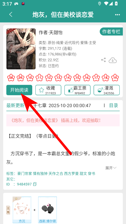 2、在小說(shuō)詳情界面,點(diǎn)擊開(kāi)始閱讀按鈕,進(jìn)入小說(shuō)閱讀頁(yè)面。