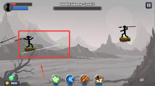 1、開始游戲后先熟悉長矛的投擲操作,通過拖動控制發(fā)射角度與力度。