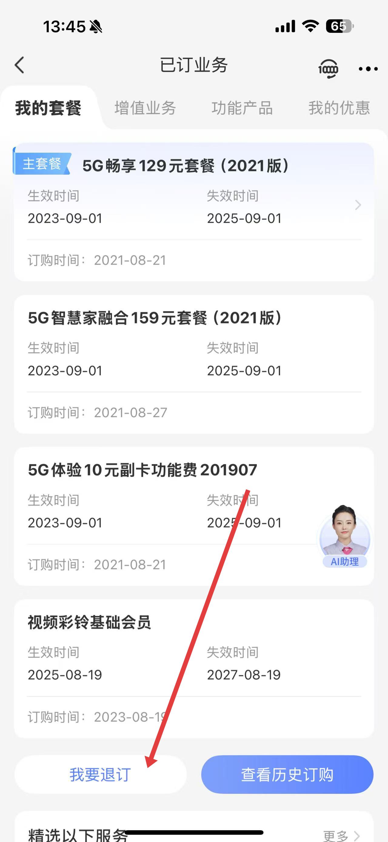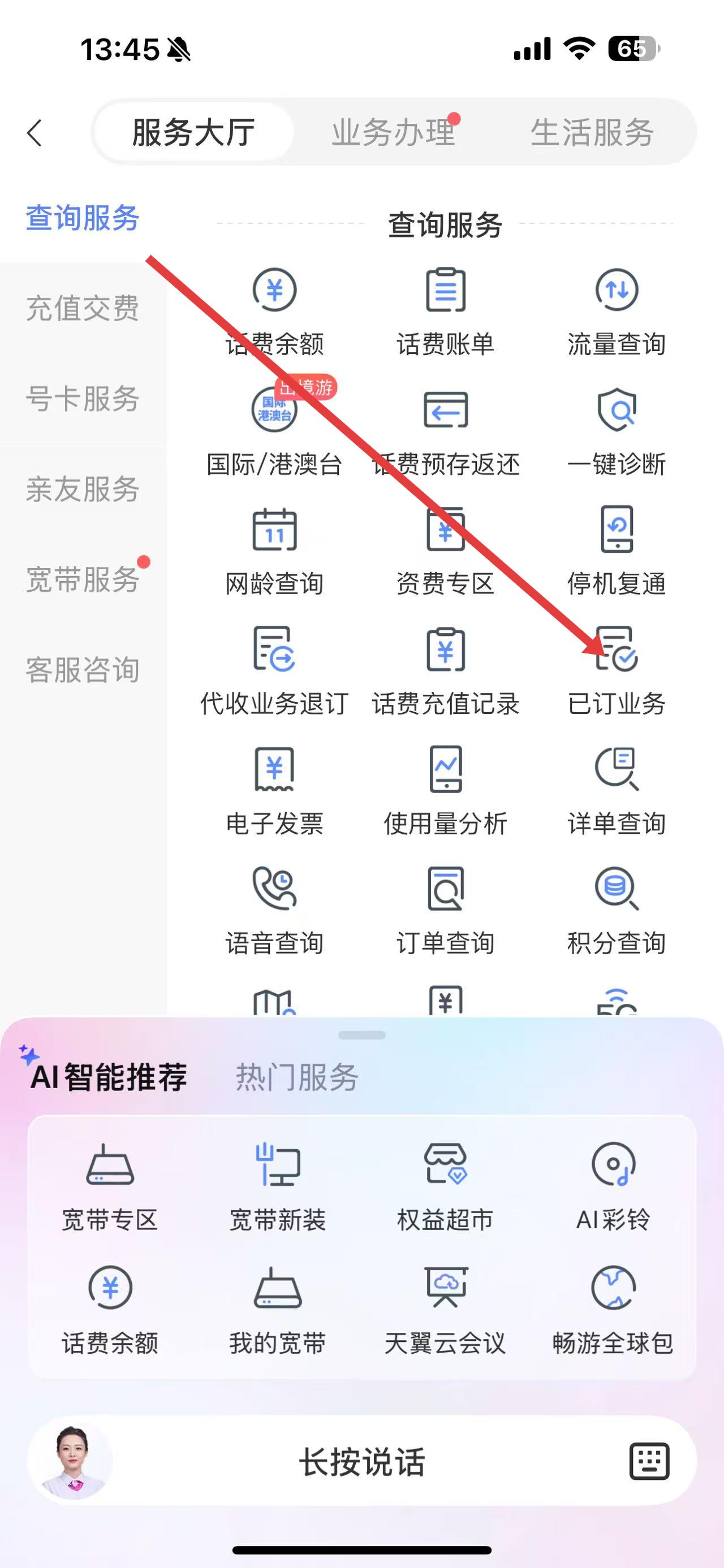 3、在服務(wù)大廳的查詢服務(wù)里,點擊已訂業(yè)務(wù),進(jìn)入頁面后選擇要退訂的業(yè)務(wù),點擊我要退訂按鈕完成操作。