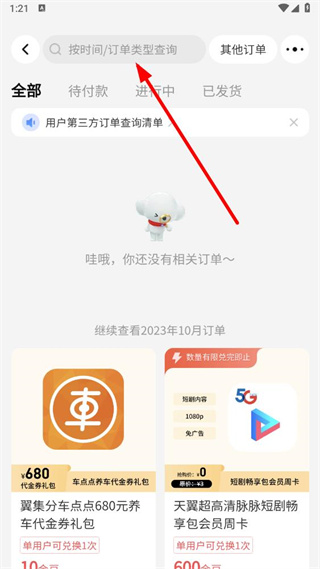 3、在頁面展示全部訂單,若要查詢其他訂單,點擊搜索框下方的篩選按鈕,彈出訂單篩選頁面。