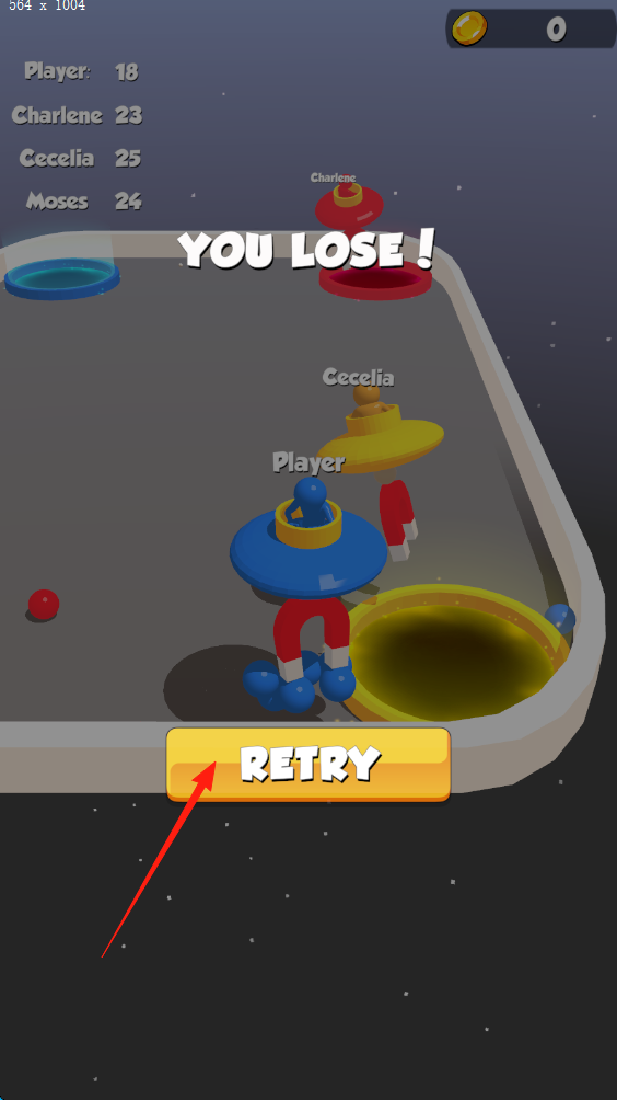 3、若失敗,點擊重新開始,調(diào)整策略,避開對手干擾,專注收集投球獲勝。