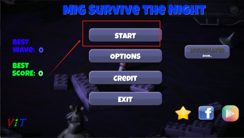 1、在游戲主界面選中紅框標(biāo)注的"START"按鈕開始游戲,初次進(jìn)入可先查看"OPTIONS"調(diào)整操作設(shè)置,確認(rèn)后進(jìn)入生存挑戰(zhàn)。