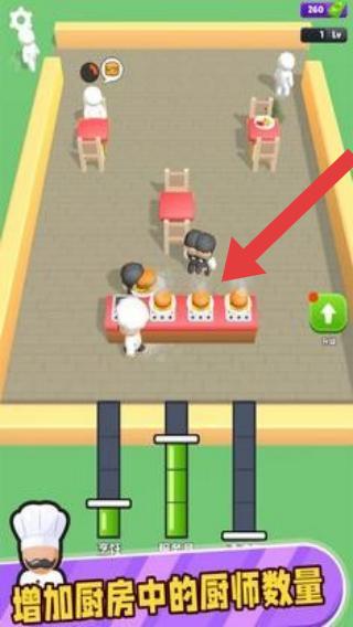 1、玩法涉及經營餐廳(模擬經營,需增加廚師數量提升效率),屬于模擬經營餐廳類。