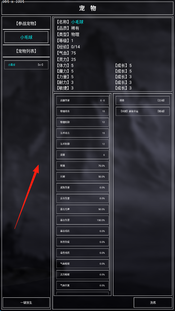 3、進入寵物界面,培養(yǎng)小毛球,提升等級與屬性,讓其助力戰(zhàn)斗。