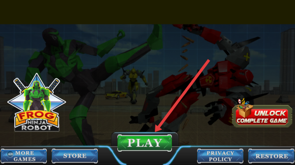1、登錄游戲,在主頁面點擊【PLAY】,進(jìn)入【Frog-Ninja-Robot】,操控青蛙忍者機器人,開啟城市冒險。