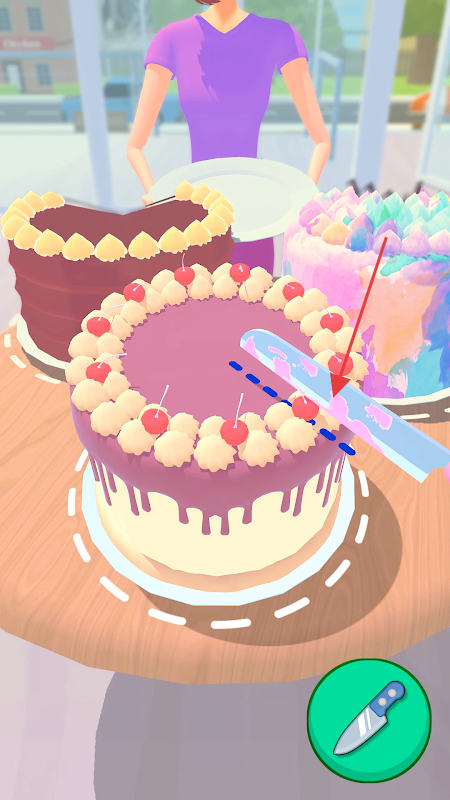 1、點擊刀具,對展示的蛋糕進行切割操作,按需求切出不同尺寸、形狀的蛋糕塊,滿足顧客或任務要求。