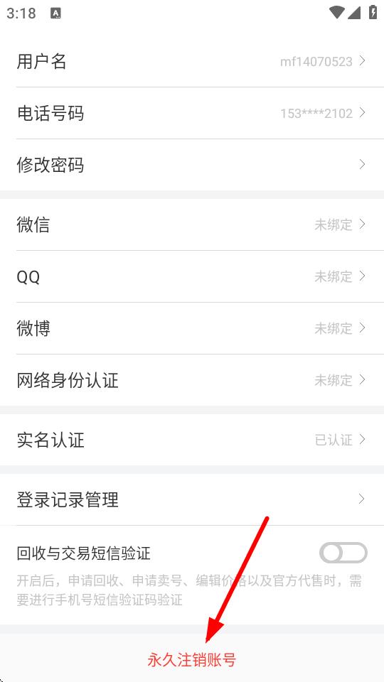 4、在賬號(hào)與安全頁(yè)面底部,點(diǎn)擊永久注銷(xiāo)賬號(hào)并按提示完成操作。