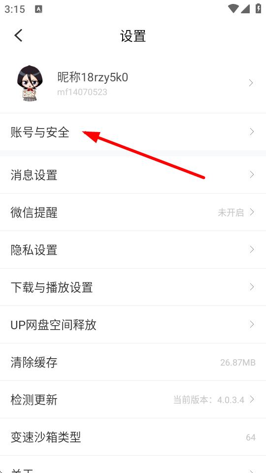 3、在設(shè)置頁(yè)面中,點(diǎn)擊賬號(hào)與安全選項(xiàng)進(jìn)入相關(guān)設(shè)置頁(yè)。