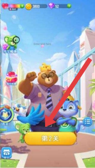 1、在游戲的主界面,點(diǎn)擊【第2關(guān)】,進(jìn)入第二關(guān)消除挑戰(zhàn),準(zhǔn)備匹配萌寵,完成關(guān)卡目標(biāo)。