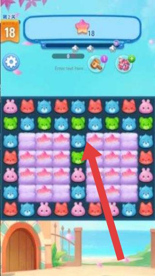 2、消除關(guān)卡中,按箭頭指引,尋找可匹配的同色萌寵(如藍(lán)色),滑動連線消除,積累分?jǐn)?shù)、推進(jìn)進(jìn)度。