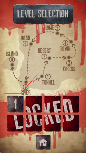 1、在關(guān)卡選擇界面查看各區(qū)域解鎖狀態(tài),紅框顯示數(shù)字"1"為鎖定關(guān)卡,需完成前置任務(wù)才能開啟河流區(qū)域冒險(xiǎn)。