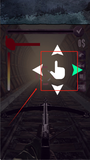 3、裝備十字弩進(jìn)入隧道關(guān)卡,按照屏幕紅框箭頭指示的方向瞄準(zhǔn)射擊,注意剩余彈藥數(shù)量顯示為0需及時(shí)補(bǔ)充。