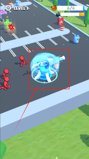 1、初始關(guān)卡操控藍(lán)色炮臺(tái)裝置,瞄準(zhǔn)紅色小人進(jìn)行射擊,注意觀察上方"LEVEL 1"進(jìn)度條,合理分配彈藥完成首關(guān)任務(wù)。