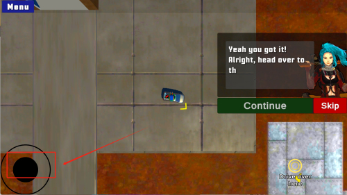 2、根據(jù)第二張圖紅框標(biāo)記的黑色目標(biāo)區(qū)域,操控角色移動到指定位置,點擊"Continue"確認(rèn)行動路線或"Skip"跳過當(dāng)前指引。