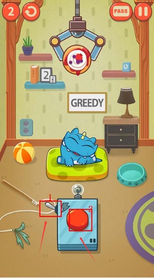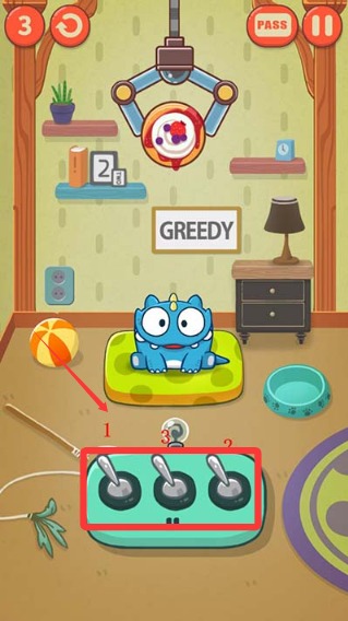 3、第三關(guān)需要按順序從左到右按動搖桿,就可以投食了。