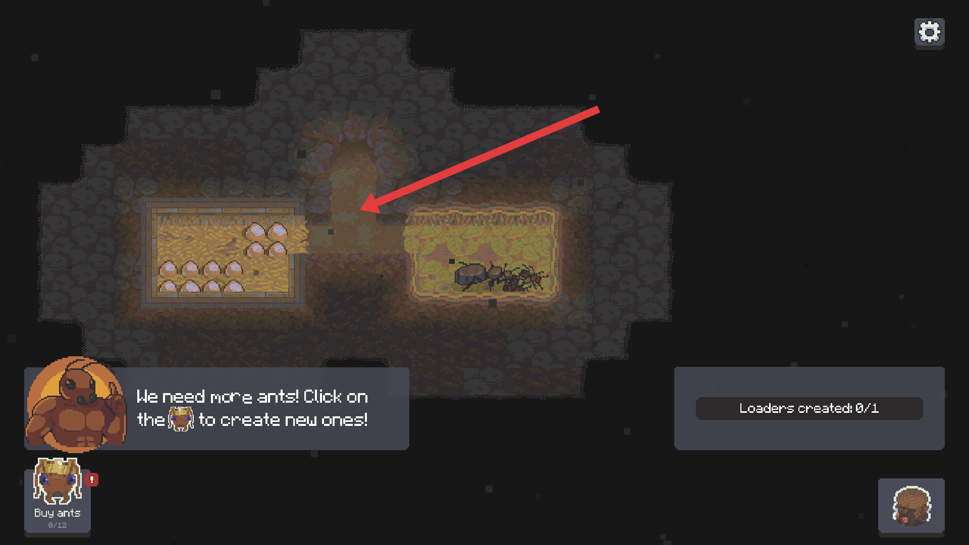 1、開局三只工蟻加一顆卵,靠撿樹葉渣開啟你的創(chuàng)業(yè)之路。