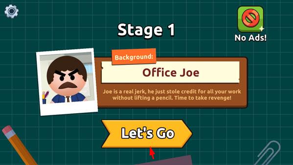 1、打開(kāi)暴打老板V,點(diǎn)擊let's go開(kāi)啟挑戰(zhàn),從豐富的武器庫(kù)中挑選首件道具,準(zhǔn)備向老板發(fā)起攻擊。