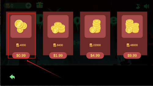 1、在商店界面查看金幣購買選項,紅框標注的"0.99美元=4000金幣"套餐性價比最高,適合初期資源積累。