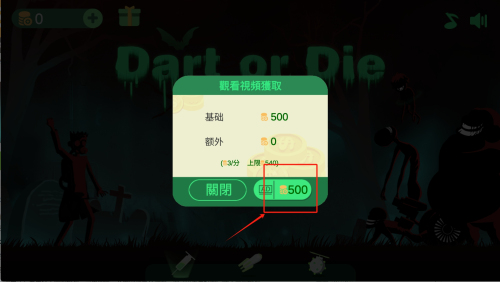 2、進入獎勵界面點擊紅框處"500"按鈕,消耗金幣立即獲取當前獎勵,無需等待3分鐘倒計時結(jié)束。