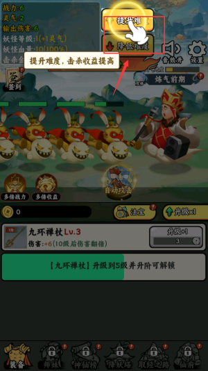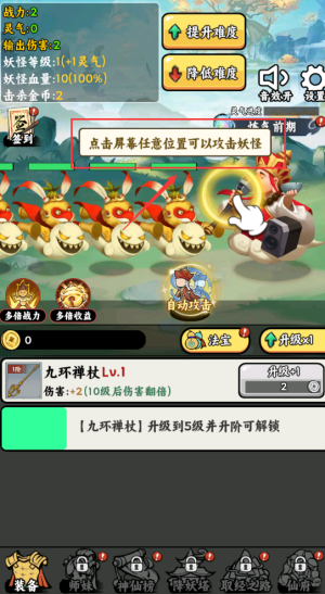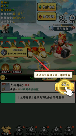 2、根據(jù)游戲提示,擊殺妖怪的金幣可以用來升級裝備。