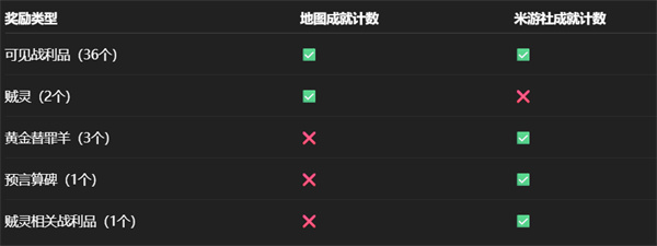 1、查看成就列表(可見戰(zhàn)利品、嫉靈等),明確地圖與米游社成就進度差異。