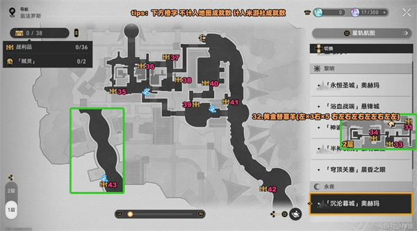 2、依據(jù)標注點位(黃金替罪羊、嫉靈等位置),前往“諭汐羅斯”1層、2層區(qū)域。