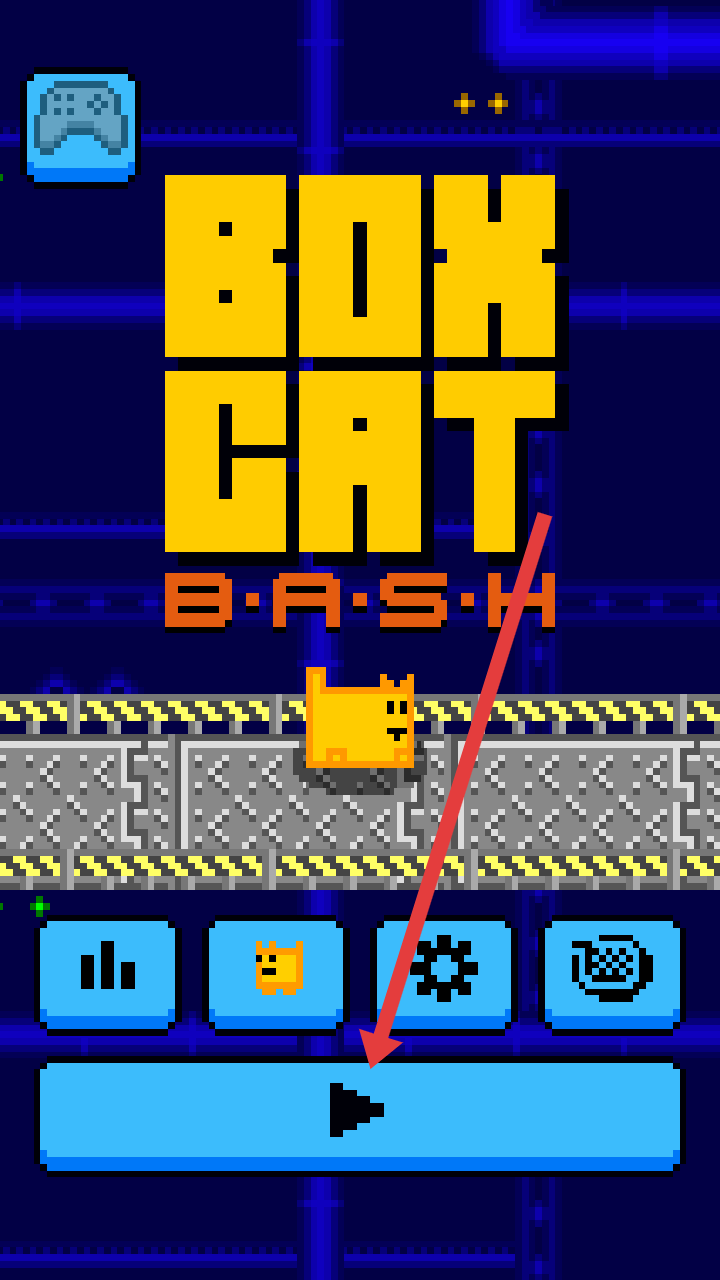 1、進(jìn)入游戲主界面,點(diǎn)擊底部藍(lán)色【播放按鈕】(黑色三角形圖標(biāo)),即可開(kāi)啟盒子貓沖撞的冒險(xiǎn)之旅。