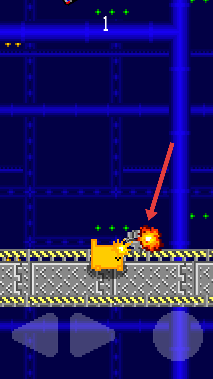 3、游戲過(guò)程中,操控黃色方塊貓,主動(dòng)攻擊場(chǎng)景中的【火焰敵人】,通過(guò)擊敗敵人積累得分,推進(jìn)關(guān)卡進(jìn)程。
