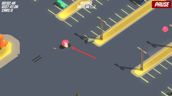 3、遇粉色道具(護盾)必吃,防碰撞,繞開警車,刷新逃亡距離(DIST)紀錄。