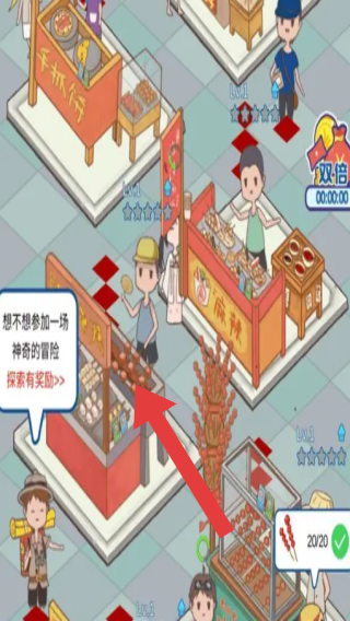 2、呈現(xiàn)小吃街經(jīng)營(yíng)場(chǎng)景,有“干炸仔”“煎餅”等攤位、人物,屬于經(jīng)營(yíng)小吃攤、完成任務(wù)(如冒險(xiǎn)探索)獲取獎(jiǎng)勵(lì)的玩法界面,可進(jìn)行攤位升級(jí)、顧客服務(wù)等操作。
