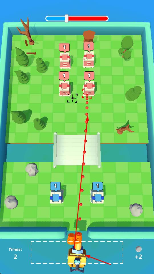 2、戰(zhàn)斗時(shí),操控炮臺(tái)瞄準(zhǔn)敵方建筑,發(fā)射炮彈,摧毀敵方防御,推進(jìn)戰(zhàn)線。