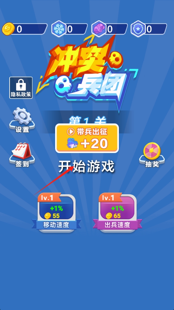 3、成長系統(tǒng):通過完成關(guān)卡獲得經(jīng)驗值提升等級,解鎖新士兵與武器,使用金幣購買基礎(chǔ)升級,鉆石可購買高級武器與加速成長,支持觀看廣告免費獲取隨機資源。