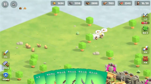 建筑精簡方案:僅保留"木材廠(Lv3)"、"紡織所(Lv3)"、"兵營(Lv2)"三座核心建筑,拆除其他非必要建筑節(jié)省空間,若需提升防守能力,可在基地外圍建造4-6段石墻。