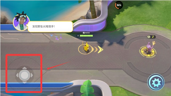 3、然后就會開始有一段教程,滑動左下角搖桿即可移動寶可夢。