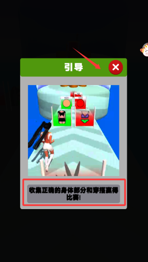 2、根據(jù)游戲指引,收集正確的身體部分和穿搭。