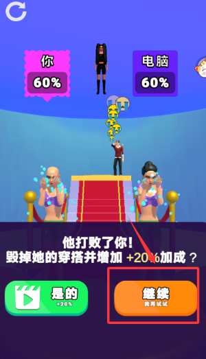 3、要是被電腦打敗后,點(diǎn)擊右下角繼續(xù)重新開(kāi)始。
