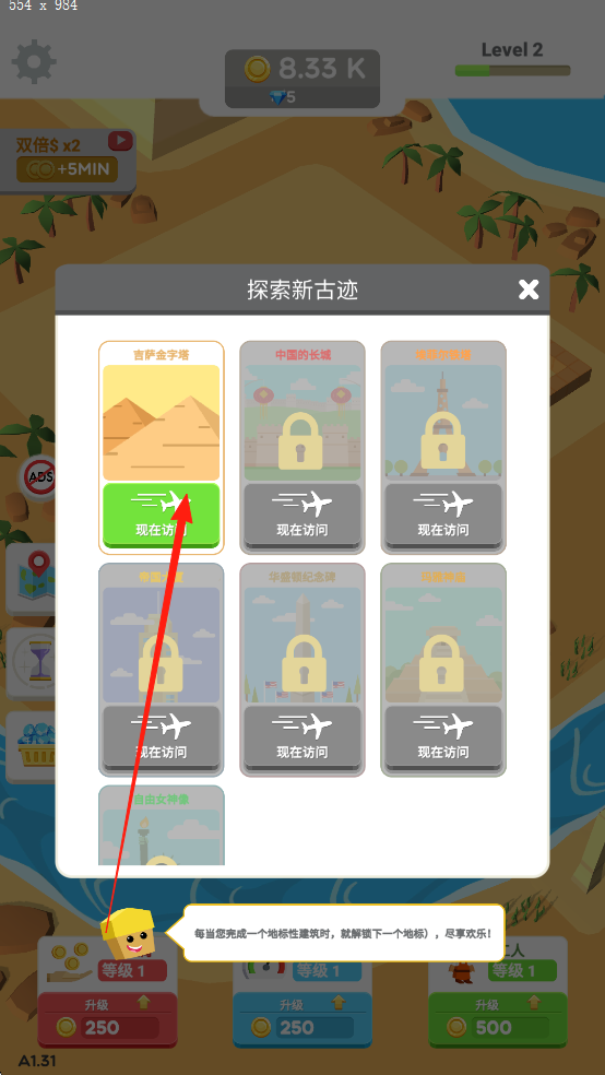 1、基礎操作體系:點擊屏幕選擇建筑圖紙,拖拽材料完成施工,長按建筑觸發(fā)升級選項,通過組合操作完成復雜建造任務操作簡單直觀,讓玩家專注創(chuàng)意規(guī)劃。