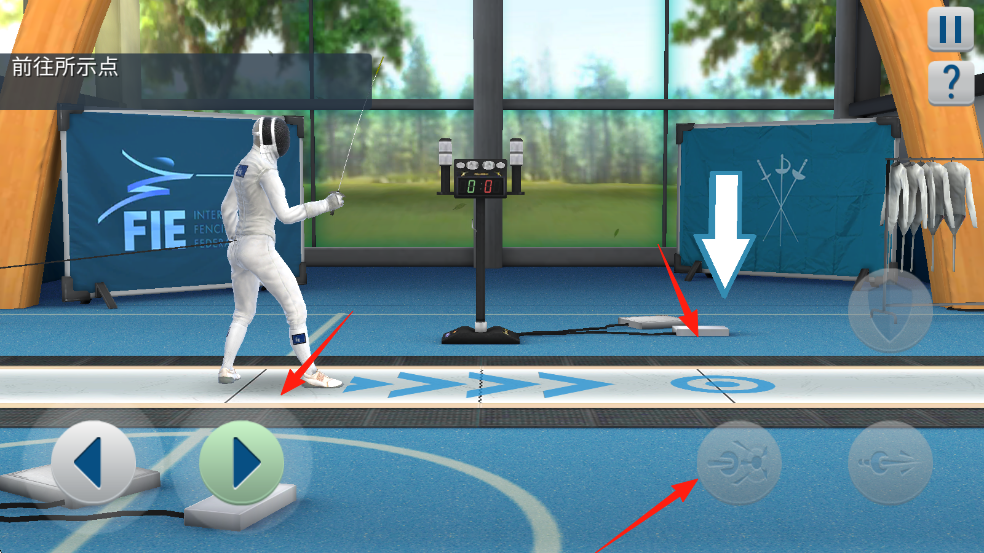 2、依據(jù)指引【前往所示點(diǎn)】,操控角色沿箭頭方向移動(dòng),到達(dá)指定位置可開啟后續(xù)擊劍流程。