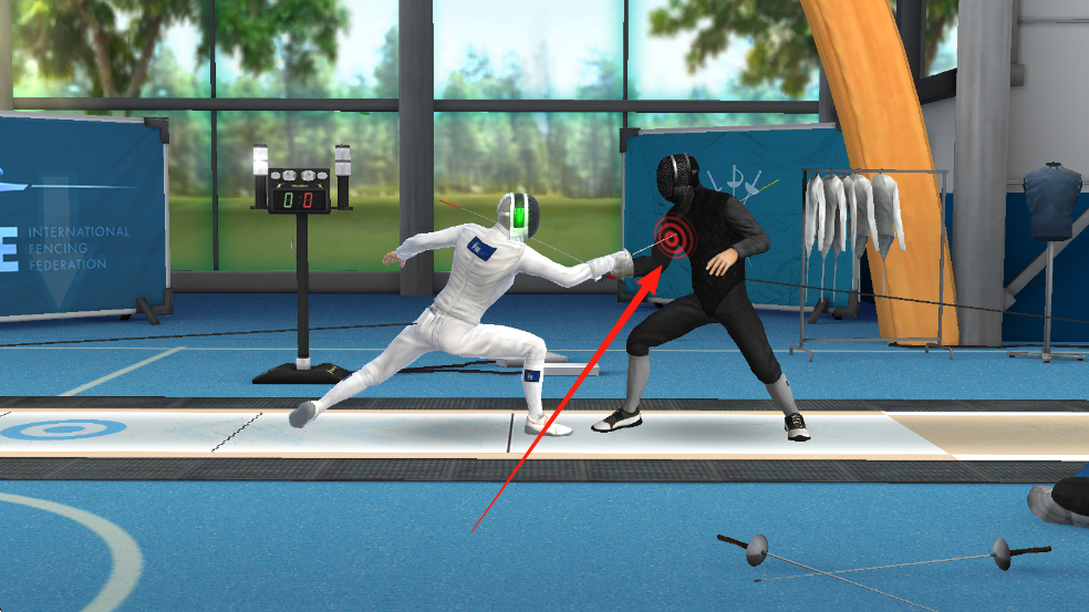 3、戰(zhàn)斗時(shí)瞄準(zhǔn)對手身上【紅色靶心區(qū)域】出擊,精準(zhǔn)刺中該部位可有效得分完成進(jìn)攻。