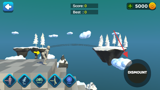 3、點(diǎn)擊右側(cè)【DISMOUNT】按鈕,觸發(fā)火柴人行動(dòng),嘗試穿越場(chǎng)景。